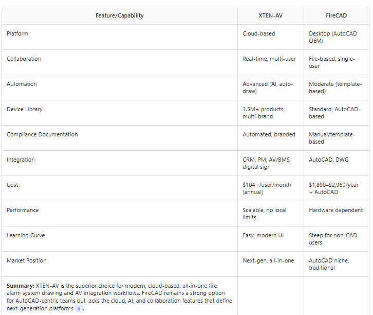 XTEN-AV vs. FireCAD: A Technical Comparison