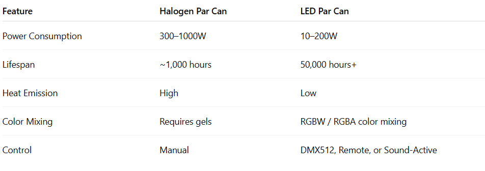 “Par Can” stands for Parabolic Aluminized Reflector, originally developed for stage and film lighting using halogen lamps. Traditional Par Cans used incandescent or halogen bulbs that consumed significant power and generated substantial heat. With the advent of LED technology, these legacy fixtures evolved into LED Par Can lights—offering brighter output, cooler operation, and far greater efficiency.