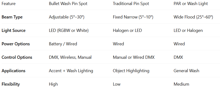 Comparison: Bullet Pin Spot vs Other Lighting Types